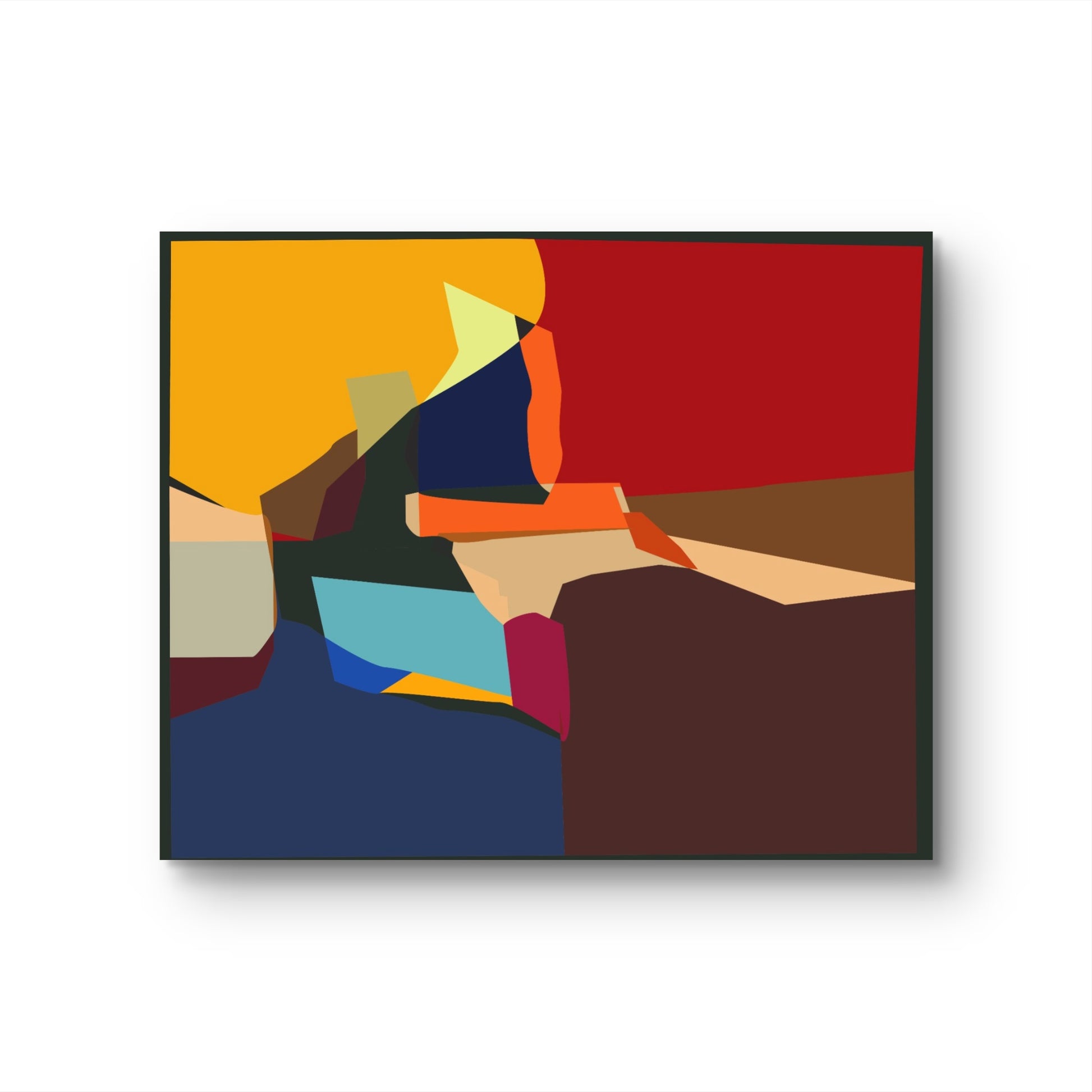 Cette scène au style géométrique et figuratif dépeint un moment mondain entre deux personnages vêtus de tenues formelles, échangeant dans une ambiance chic et colorée. Les couleurs vibrantes, dominées par des tons de bleu, jaune et rose, donnent à l'œuvre un dynamisme unique tout en conservant une certaine sophistication. Le contraste entre les lignes nettes et les formes stylisées crée un effet visuel frappant, rappelant les illustrations des années 1920. Cette œuvre est parfaite pour un espace moderne, apportant une touche d'élégance rétro et de charme artistique.